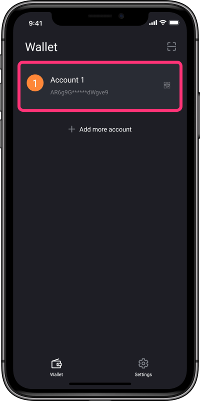 1. Click the wallet address you created;