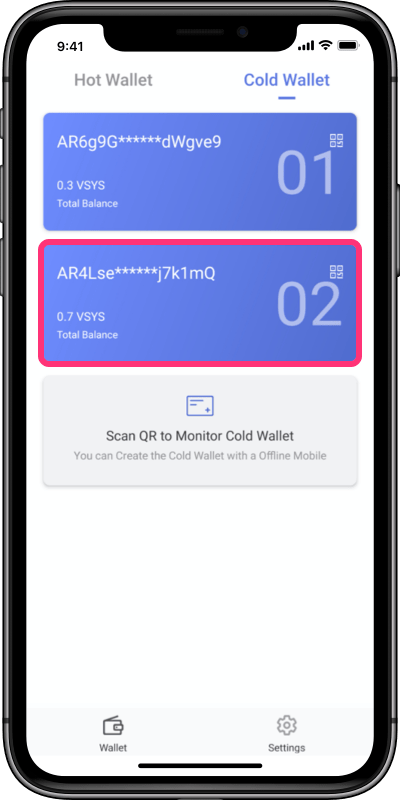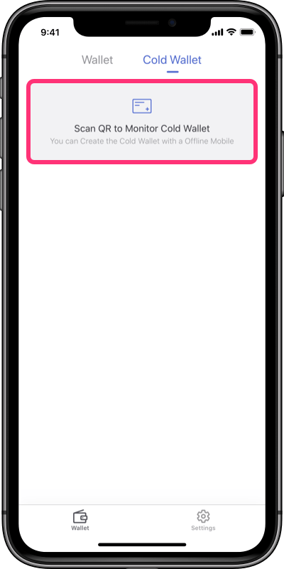 2. Scan QR to monitor a cold wallet through the hot wallet interface.