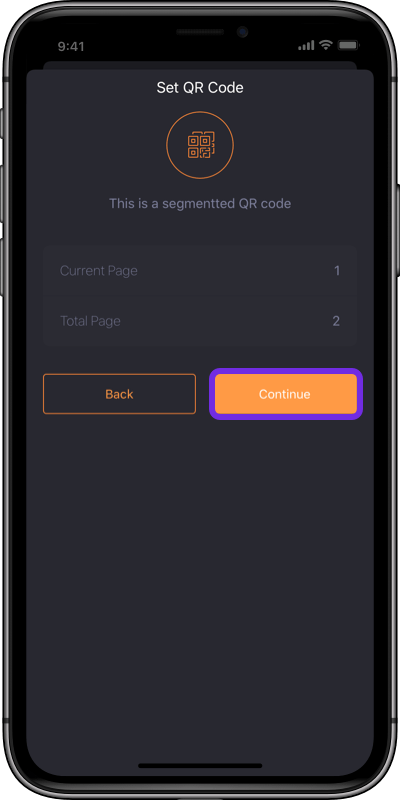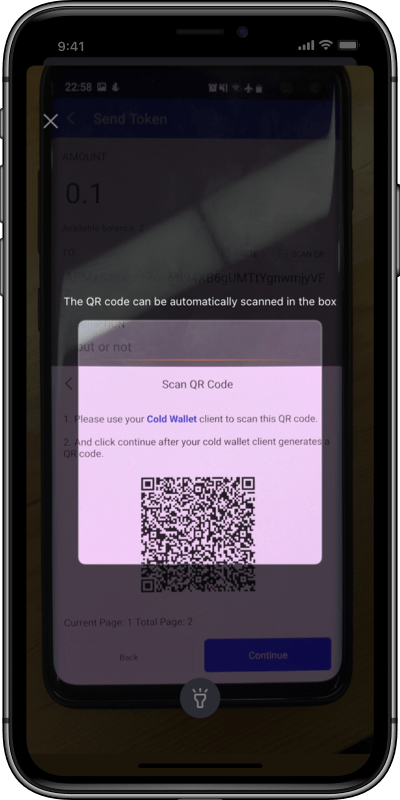 10. Use Cold Wallet client to scan this QR code and click Continue, repeat this process twice, and click Confirm.