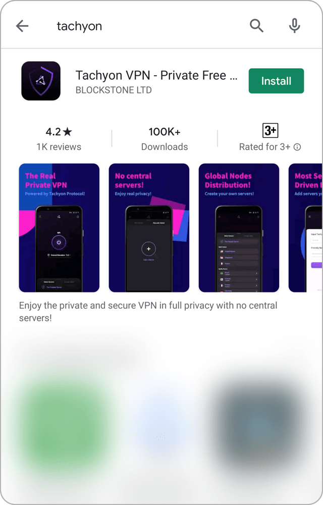 Download and install Tachyon VPN on Google Play or our website.
