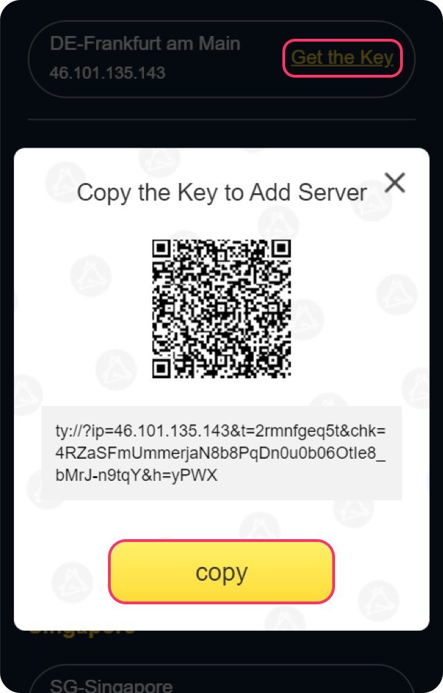 Click Get the Key, copy the Key or scan QR Code from our website.