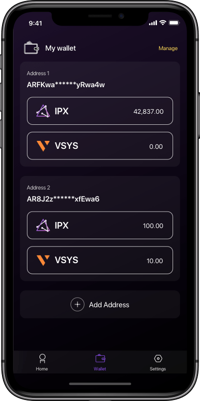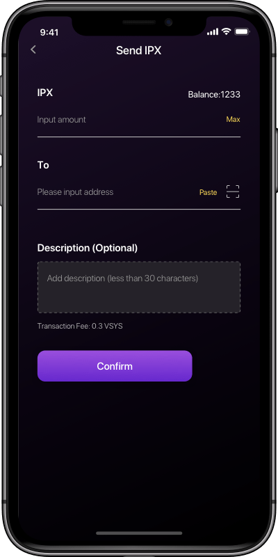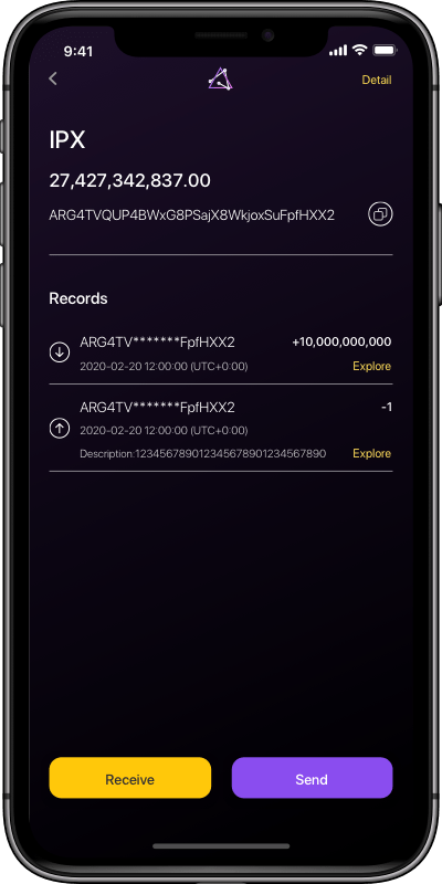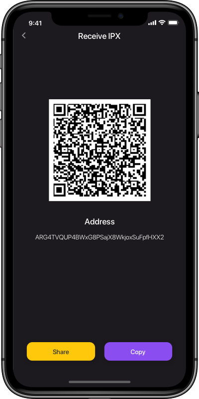 To receive IPX from another address, you need to provide your wallet address to the sender.