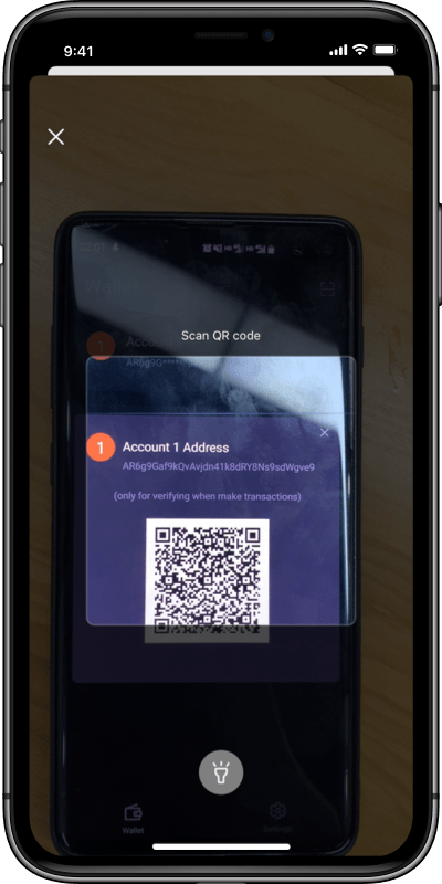 2. Scan QR to monitor a cold wallet through the hot wallet interface.