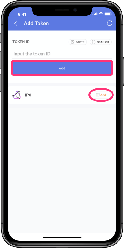 6. Paste the Token ID and click Add, or click +Add.
