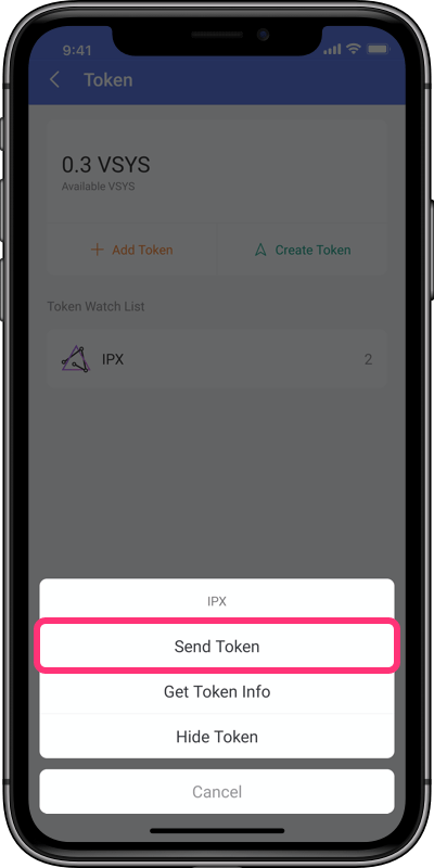 7. Click the IPX you added and click the Send Token;