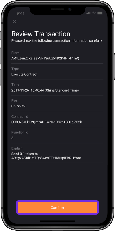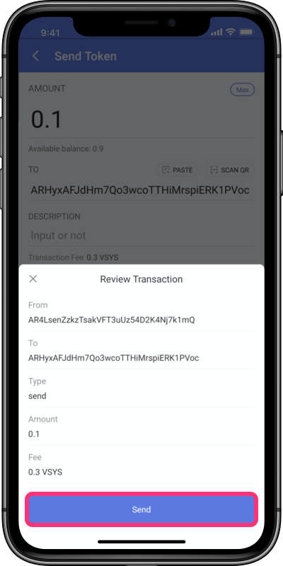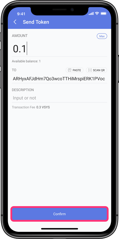 8. Input the amount, paste the Recipient Address and click Confirm;