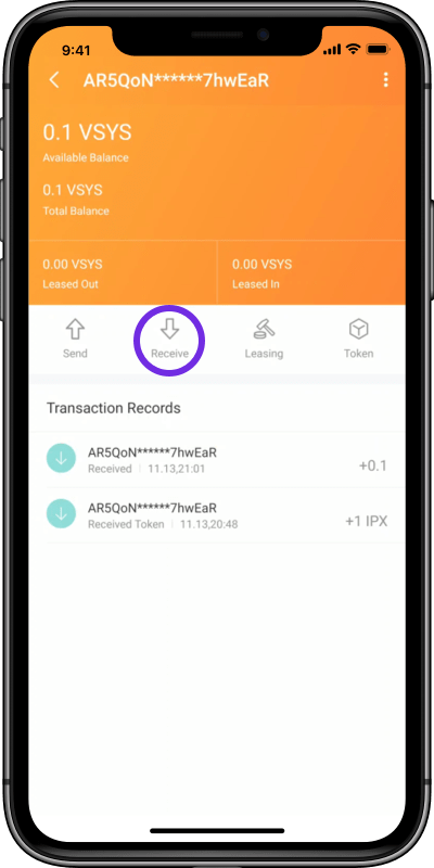 To receive IPX from another address, you need to provide your wallet address to the sender.